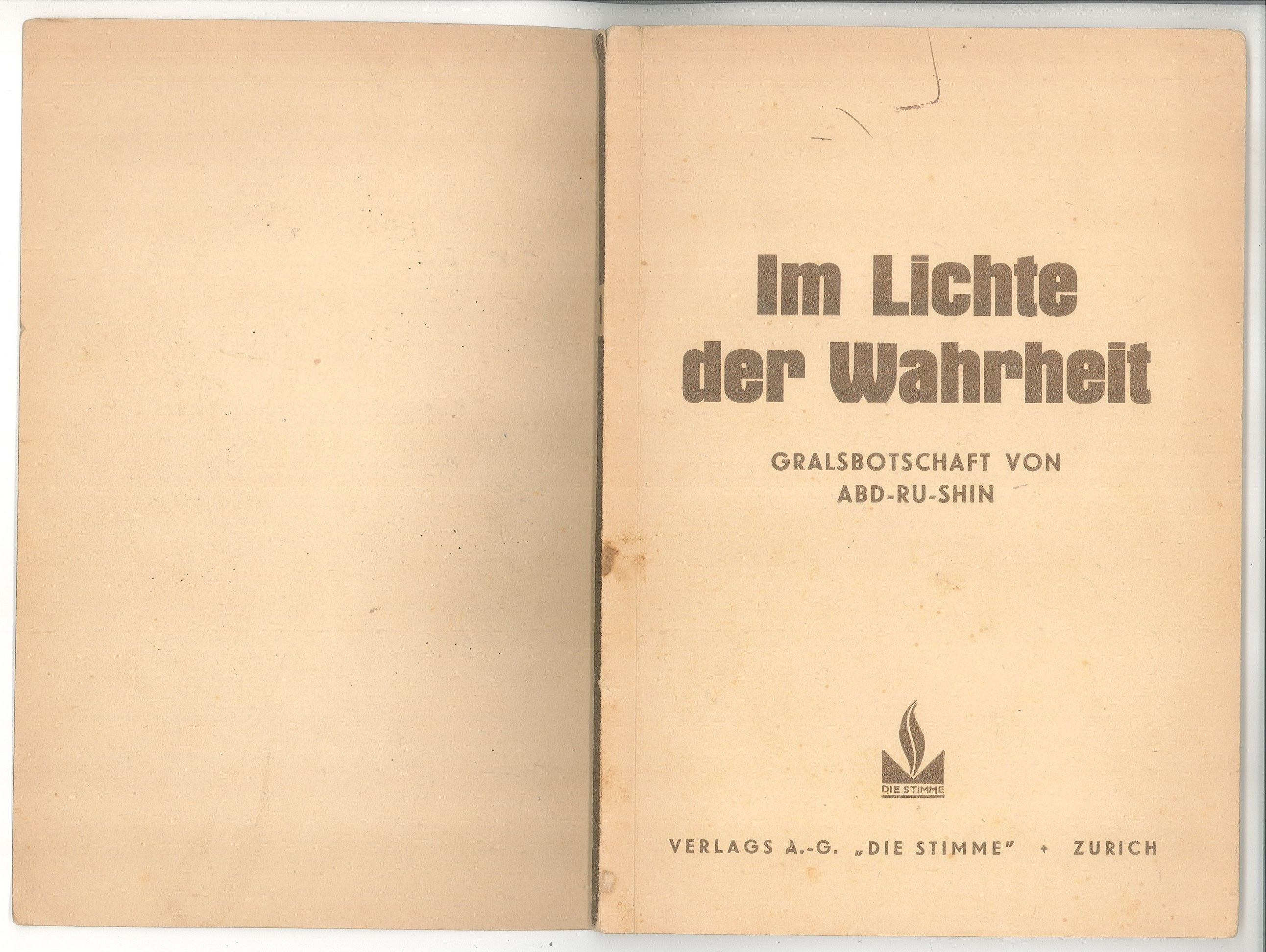"Im Lichte der Wahrheit" Heft 1, Verlags A-G "Die Stimme" Zurich.